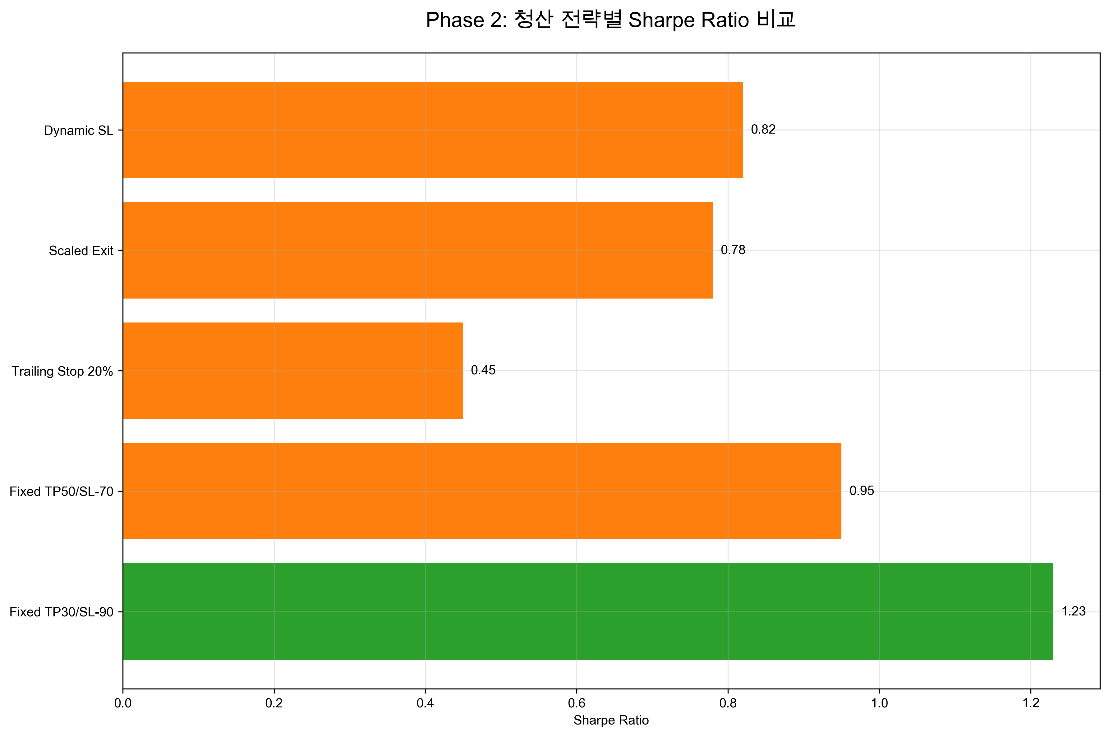 선별된 시그널에 대해 다양한 청산 전략을 테스트하여 최적 조합을 찾았습니다.