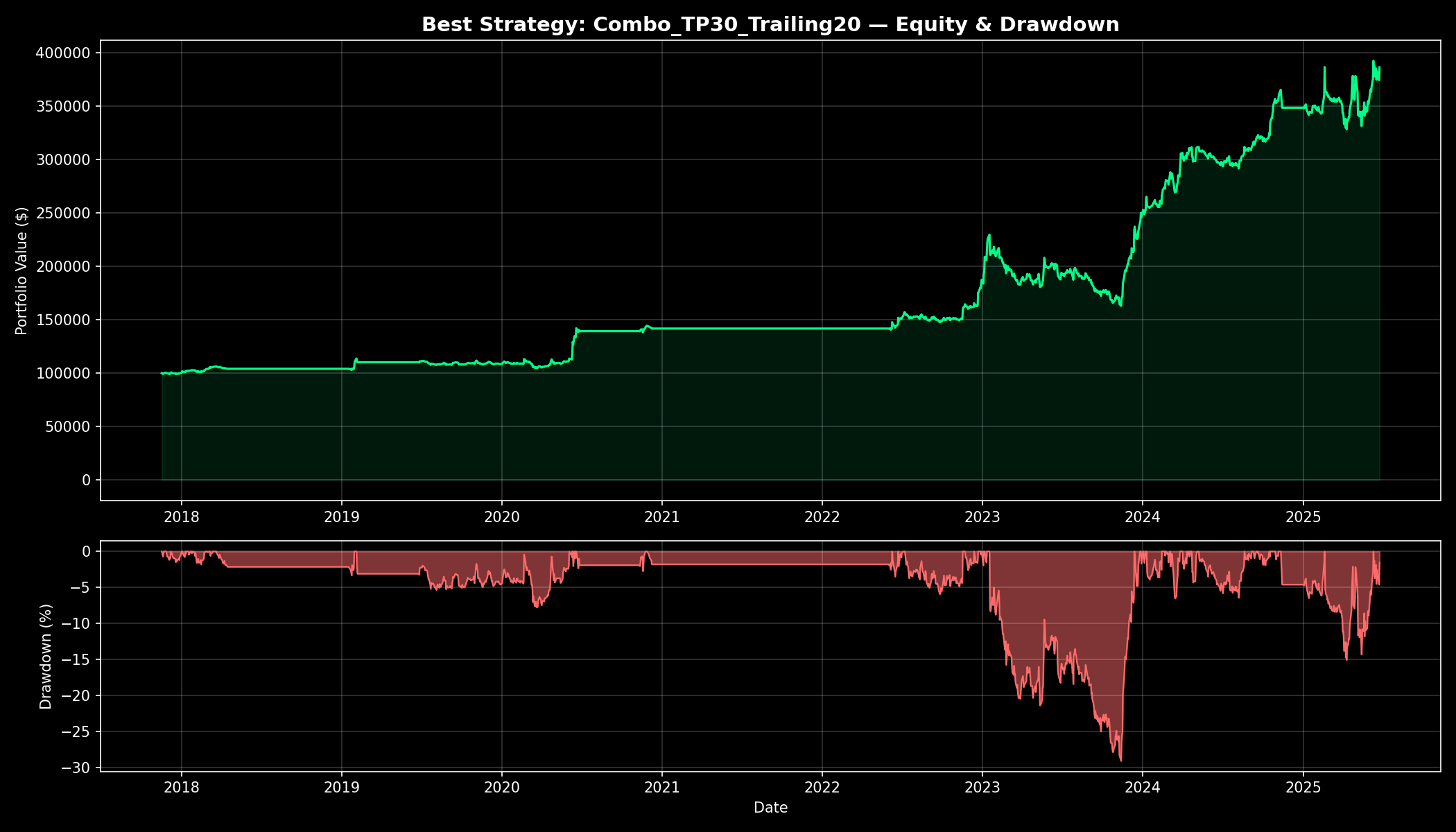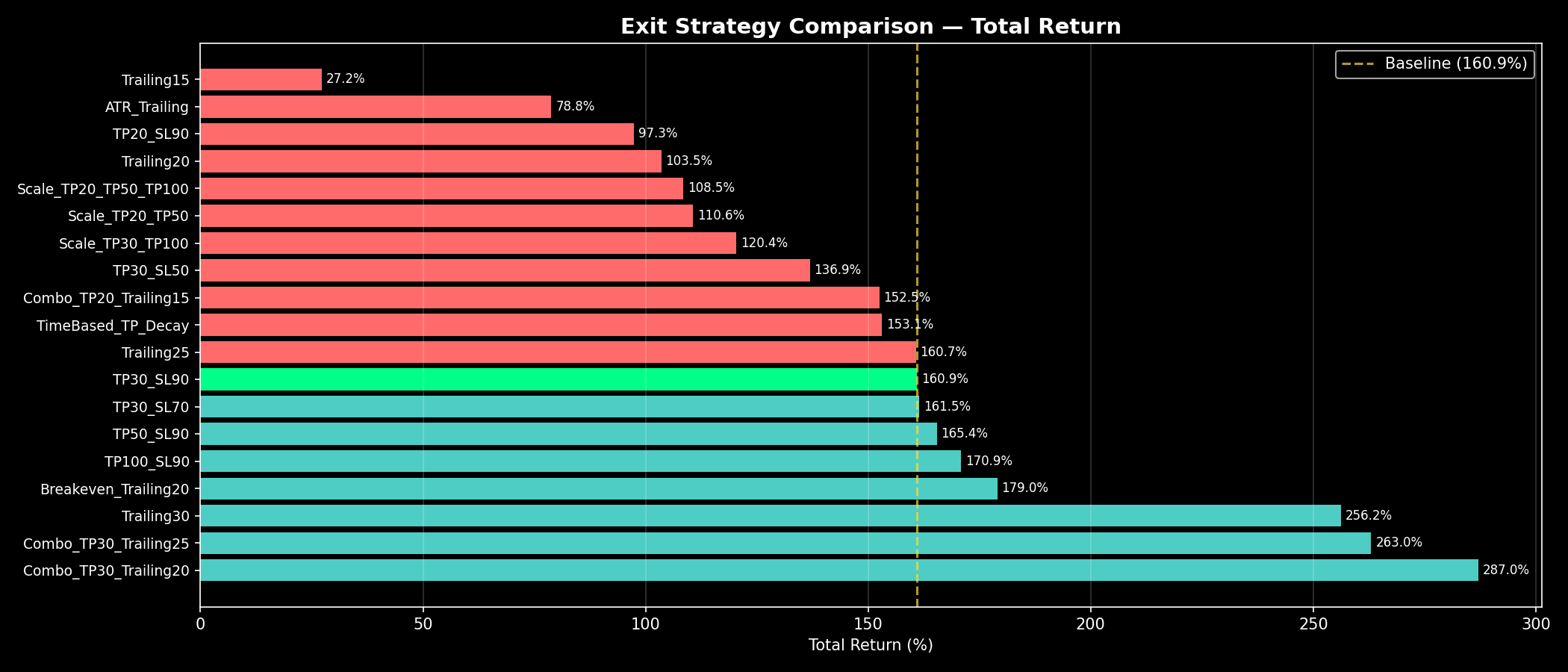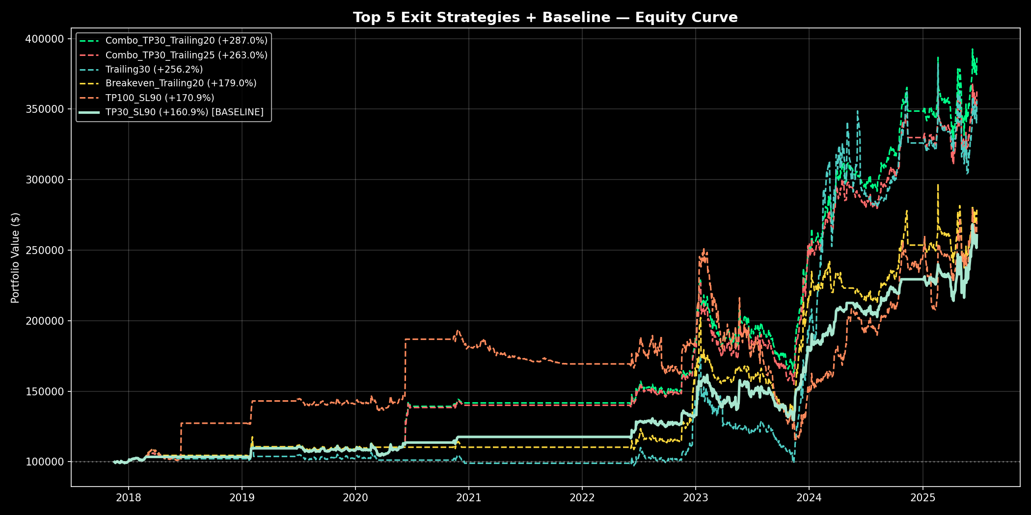 ์ต์ ์ ๋ต: Combo_TP30_Trailing20 (์์ต๋ฅ +287.0%, Sharpe 1.17)
